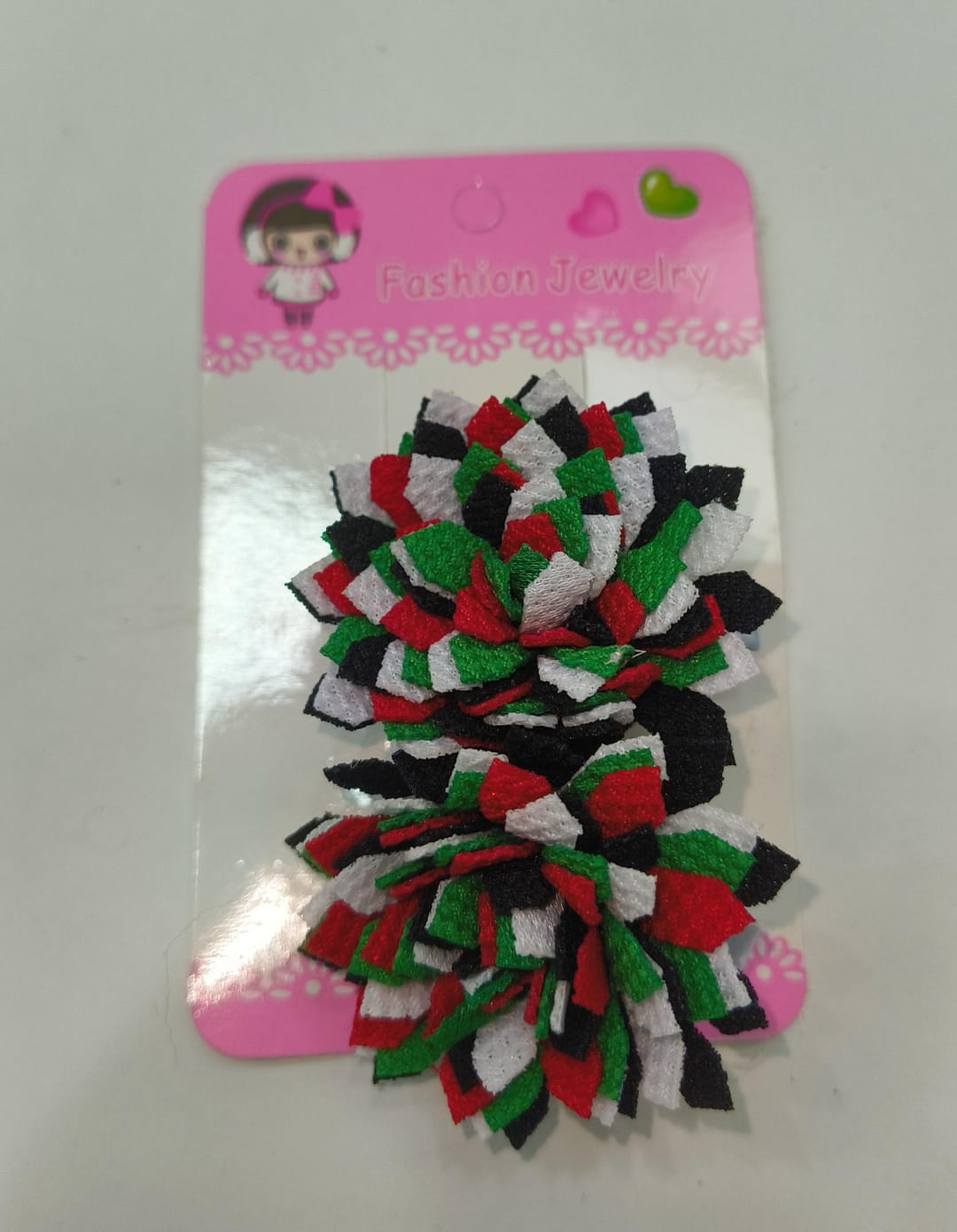 A hair clip for UAE National Day is a decorative accessory, often in the form of a hair bow or clip, that features the colors of the UAE flag (red, green, white, and black) to show national pride.