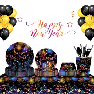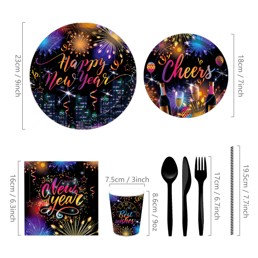 These Happy New Year Themed Tableware Set is Suitable for Any Parties. Made of Durable Food-Grade Thick Paper Material That Is Not Easy to Fold. Non-Toxic, Bpa Free, 100% Safe and Bio-Degradable and Eco-Friendly. These Can Save Clean up Time By Throwing The Paper Plates Cups Napkins and Plastic Dinnerware Out After Use
