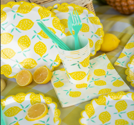 These Lemon Themed Tableware Set is Suitable for Any Parties. Made of Durable Food-Grade Thick Paper Material That Is Not Easy to Fold. Non-Toxic, Bpa Free, 100% Safe and Bio-Degradable and Eco-Friendly. These Can Save Clean up Time By Throwing The Paper Plates Cups Napkins and Plastic Dinnerware Out After Use