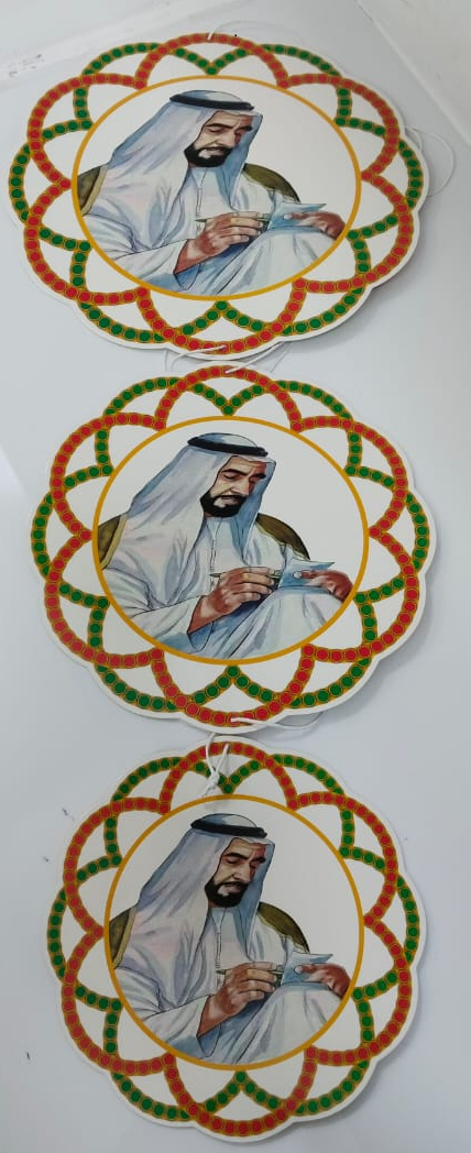 A UAE circle hanging decoration for National Day features the nation’s colors—red, green, white, and black—arranged within a circular design. The decorative item symbolizes national pride and unity for the UAE National Day, celebrated annually on December 2nd, which marks the formation of the federation in 1971.